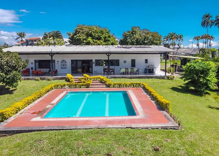 Some of the top landmarks to visit in Pereira include Parque Consota Recreation Center and Iglesia San Miguel Arcangel, which are situated 4.8 and 3.3 km from Finca La Siria villa respectively. Additionally, BioParque Ukumari Animal Park (5 km) is also recommended for a visit.
